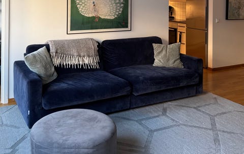 Mörkblå sammetsoffa