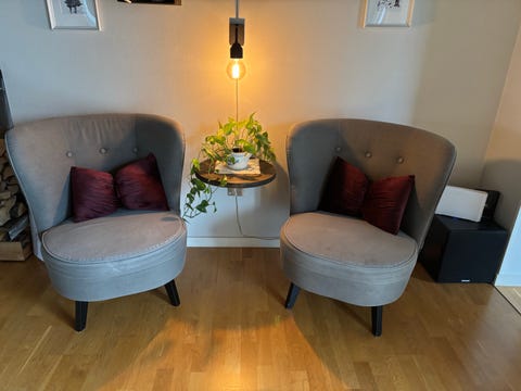 Fåtöljer med grått tyg