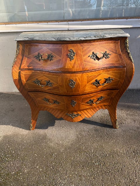 3 000 krByrå i rokokostil från 1930/1940-tal med tre lådor & en marmorskiva på toppenJärfälla6 timLägg till i favoriter.