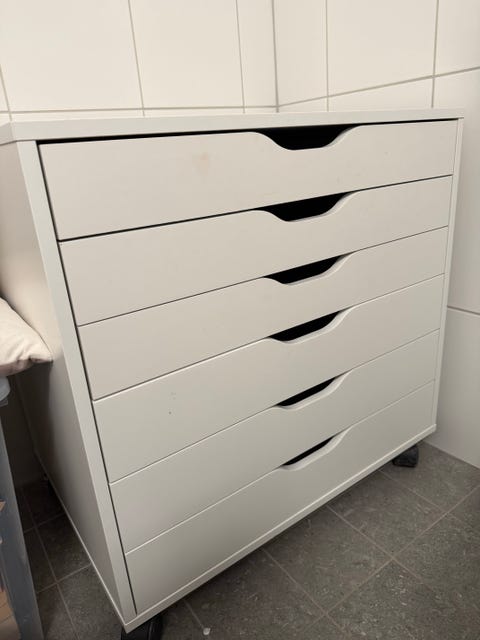 hylla med sex lådor