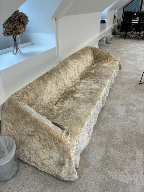 Soffa med sammetsöverdrag