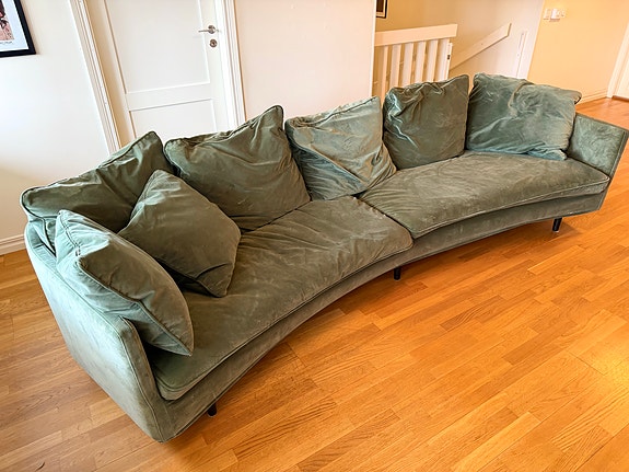 Grön soffa i sammet 3-sits.