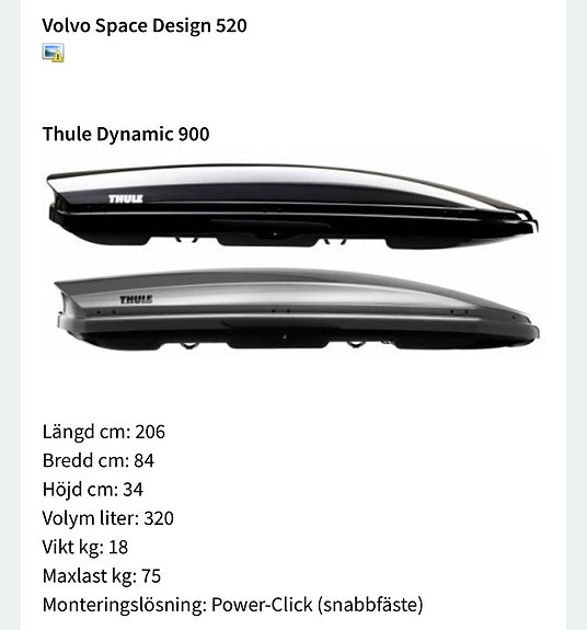 8 000 krTakbox Volvo Space Design 520 / Thule Dynamic 900 (320liter)Haparanda2 timLägg till i favoriter.Öppna annons