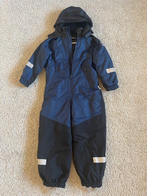 Under vintern är det viktigt att hålla de små varma med rätt kläder: ulliga heldräkter, sockor, vantar, mössor och ytterkläder. En overall är ofta snabbare att ta på än separata jackor och byxor, och snön har svårare att tränga in. I annonserna bör du kolla skicket på ytterkläderna, till exempel hur bra muddar och ben kan justeras, om det finns många reflexer och om kläderna är vattentäta.