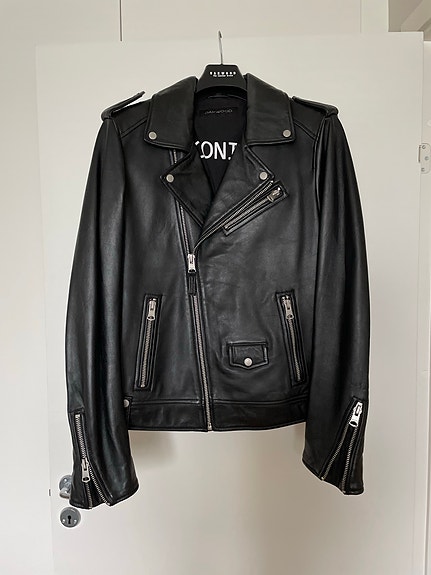 Läderjacka i retro stil, för herr i svart färg, storlek M. Från Malung.