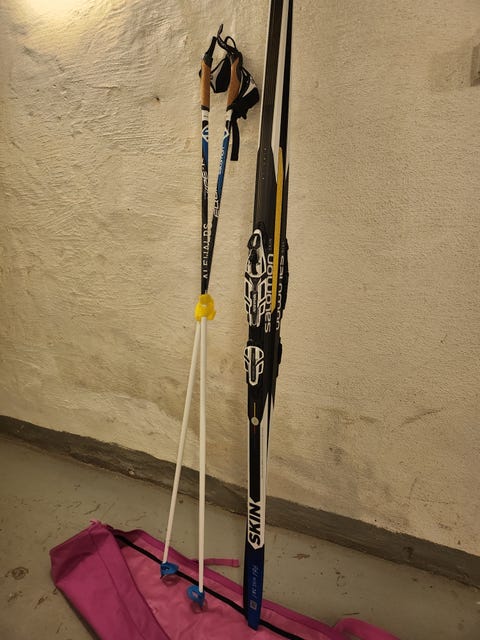 3 000 krPAKET Längdskidor (skins/vuxen), stavar, pjäxor, väska Alewalds/Salomon/AlpinaBromma1 timLägg till i favoriter.