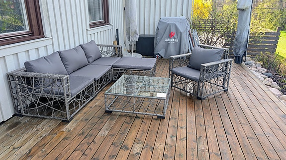 SäljesUtegrupp med soffa, fåtölj och glasbord i grå metallKållered1 timLägg till i favoriter.Öppna annons