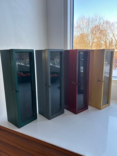 Unika små skåp med glasfönster