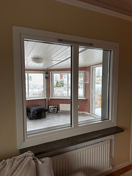 Fönster glasparti brun och vit ram