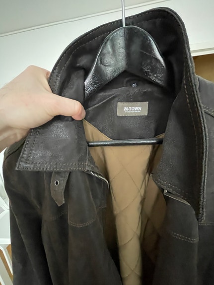 Läderjacka i retro stil, för herr i svart färg, storlek M. Från Malung.