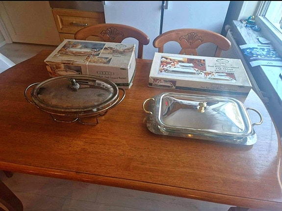 Ett vackert serveringsfat eller serveringsskål kan verkligen göra skillnad – och allt för en fin och praktisk servering kan köpas begagnat. På Blocket finns det 2 434 annons(er) som säljer serveringsfat och skålar.