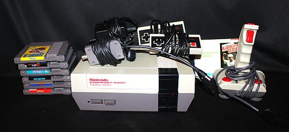 Nintendo NES 8-bit spelkonsol med handkontroller och spel