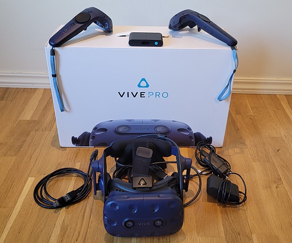 HTC Vive Pro VR-headset med kontroller och basstationer