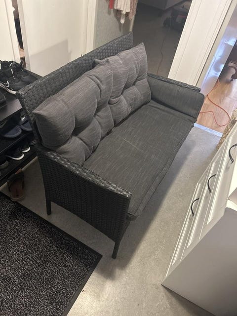 2 500 krJutholmen konstrotting 3-sits soffa och pallar med dynorVästra Karup28 oktLägg till i favoriter.