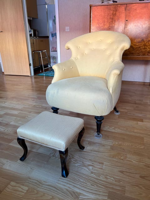 Emmafåtölj med fotpall