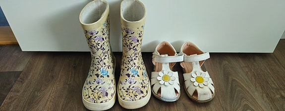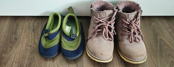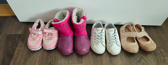 Kvalitetsskor kan vara ganska dyra. Genom att köpa begagnade kan du till exempel få vinterstövlar till ett lägre pris, och kanske till och med ett extra par för de morgnar då stövlarna inte hunnit torka efter lek i snön. Mellansäsongsskor, barnsneakers och gummistövlar blir snabbt för små när barnen växer. Om du planerar att köpa begagnade barnskor - kontrollera skornas skick i annonsen och kolla storlekstabellen på tillverkarens hemsida.