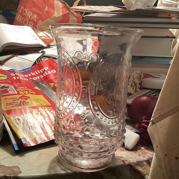 Glas Kanna och Vas i sprucket glas