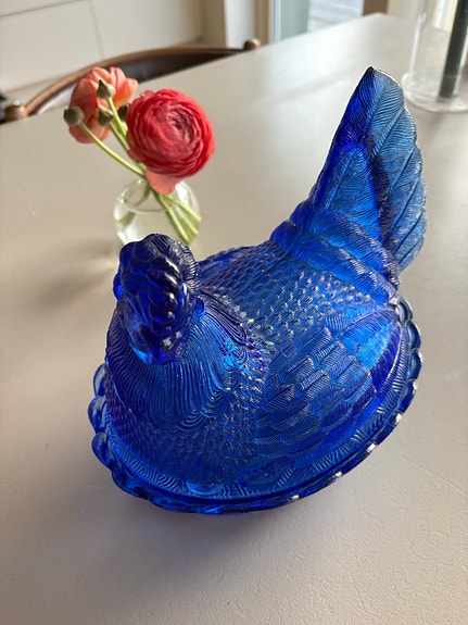 Blå ägghöna i pressglas Zabkowice