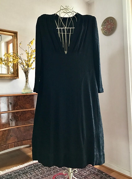 Klänning 1930/40-tal, svart vintage m paljetterad isättning