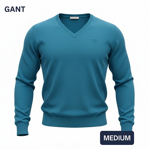 GANT V-ringad Tröja Premium Cotton Turkos Medium