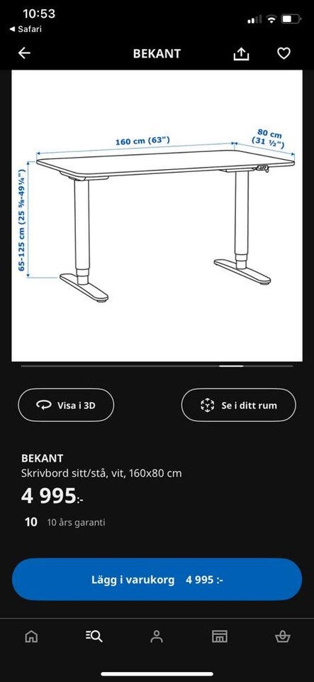 Ett skrivbord som inte längre behövs av någon annan kan vara precis vad du letar efter. Särskilt skrivbord i massivt trä eller elektriska skrivbord kan vara kostsamma, men du kan hitta ett passande alternativ betydligt billigare begagnat. Ett bra skrivbord har en höjd som passar användaren eller kan justeras efter behov. När du bläddrar bland annonserna - se till att kolla bordets mått och jämför dem med den bästa arbetshöjden för dig.