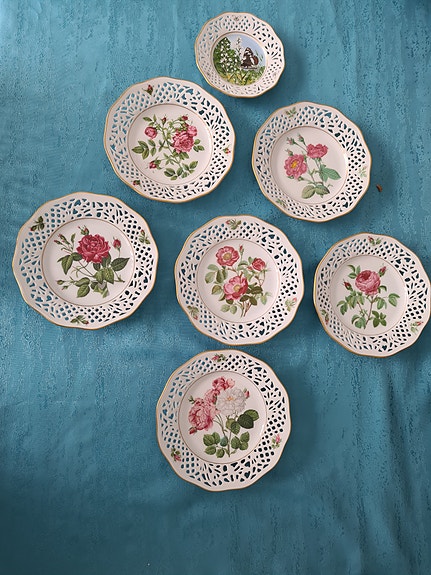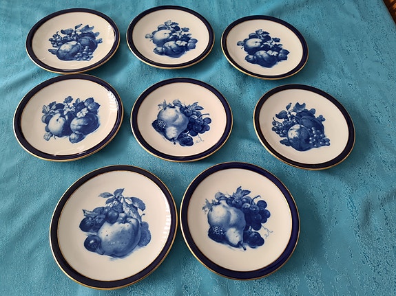 8st Frukttallrikar Rörstrand 1950-tal med guldkant.