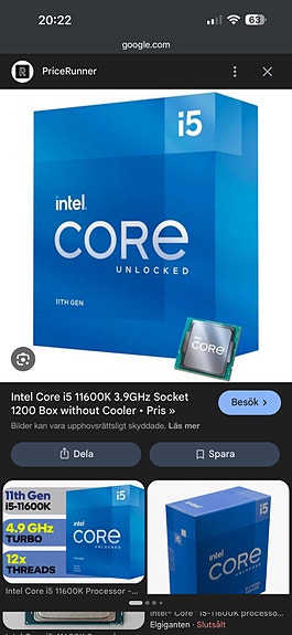 600 krIntel Core i5-11600K CPU LGA 1200Skurup1 timKöp nuLastbil i rörelseKan skickasLägg till i favoriter.Öppna annons