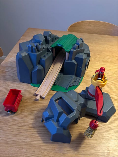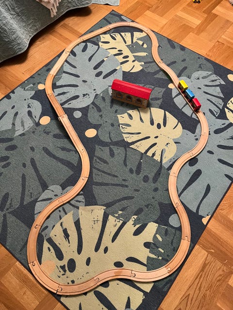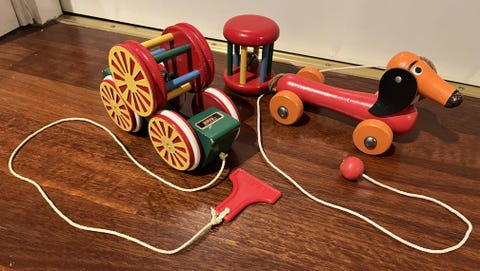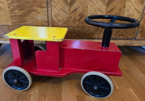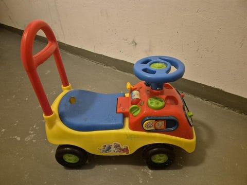 Blå leksaksbil med ratt