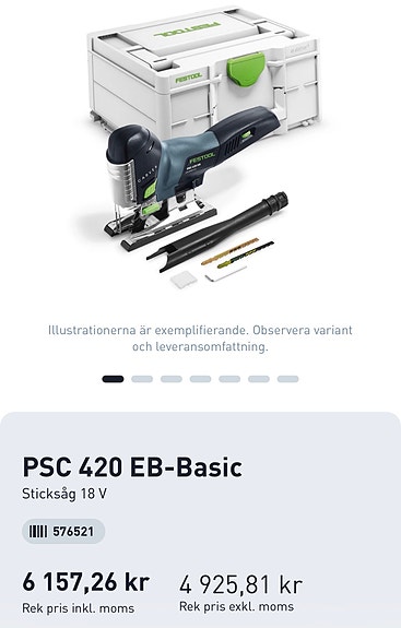 3 295 krFestool PSC 420 EB-Basic sticksåg 18VLöddeköpinge6 timKöp nuLastbil i rörelseKan skickasLägg till i favoriter.Öppna annons