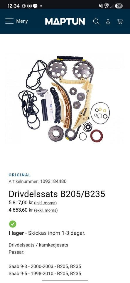 Tips: Kontrollera alltid att reservdelen passar din bilmodell innan du köper.