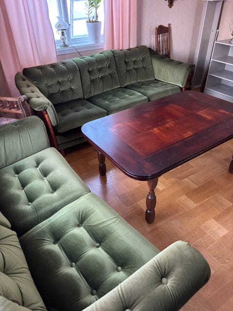 2 000 kr2 antika stolar med trästomme och grön klädsel i mönstrad sidenbrokadSaltsjö-Boo5 dagarLägg till i favoriter.