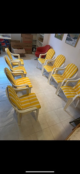 500 krUtestolar till matbord utomhus plast med gula randiga dynorMölndal10 timLägg till i favoriter.Öppna annons