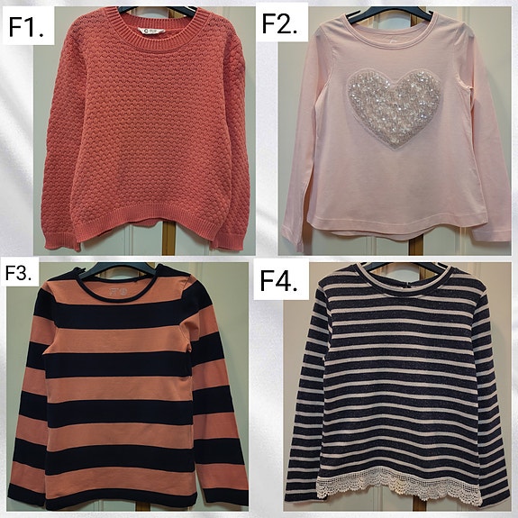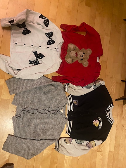 Fem Tröjor barn tröjpaket flerfärgade stickade storlek 116 flicka