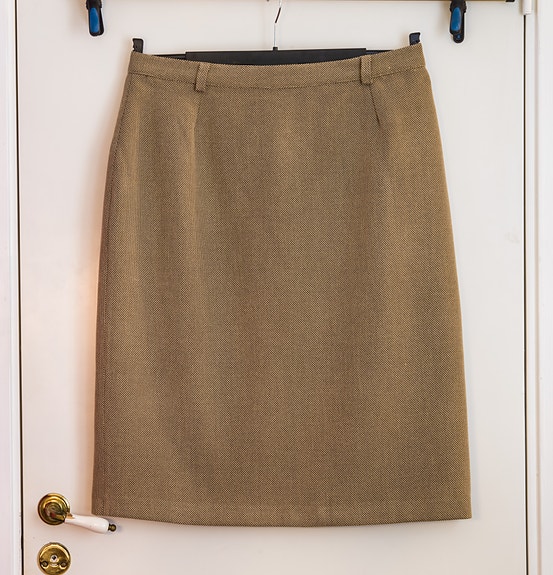 Vintage Finsk helfodrad kjol nougatfärgad från Empress, tensel/polyester, Stl 44