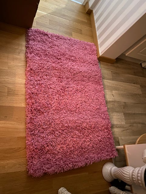 två runda röda ryamattor