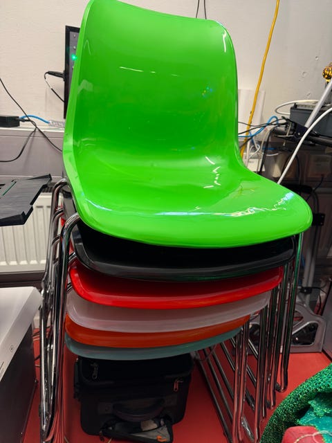 4 röda stolar