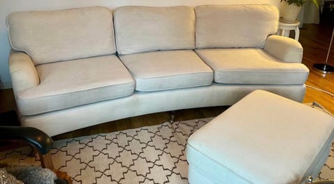 Howardsoffa med fotpall bortskänkes