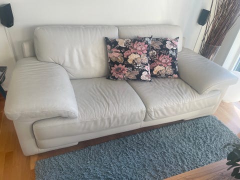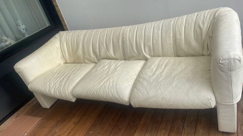 Vit skinnsoffa bortskänkes