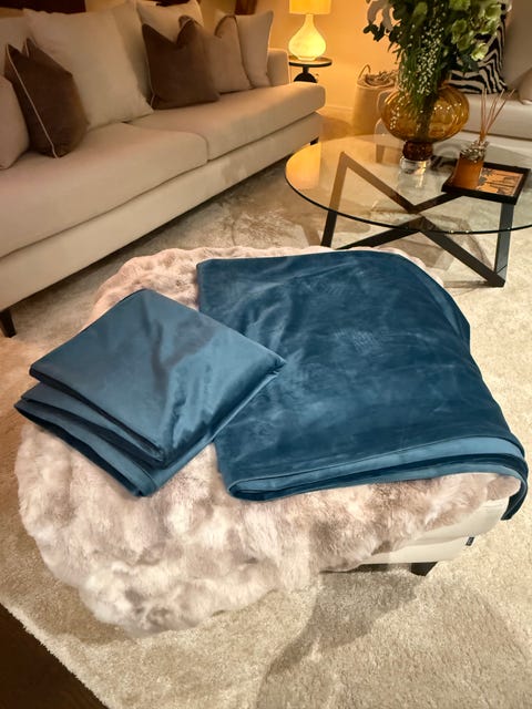 blå 3 år gammal hörnsoffa