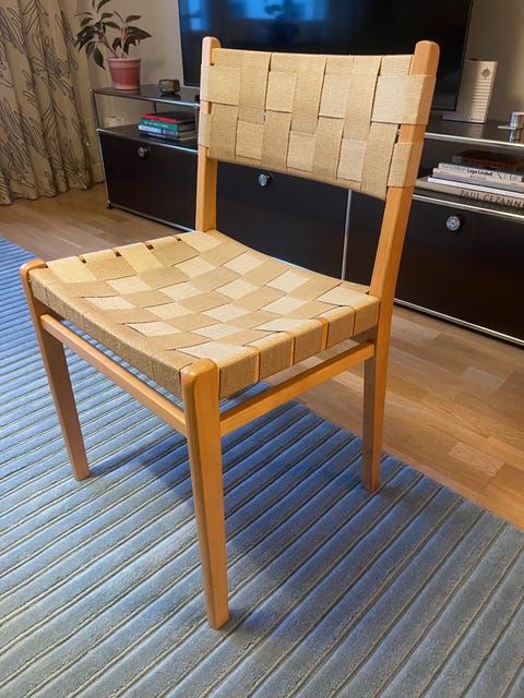 Trästol med vävd sits
