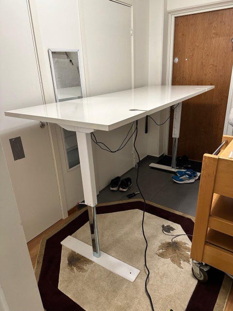 1 500 krExklusivt höj/sänkbart skrivbord med Skrivbordsskiva i Linoleum grönSollentuna22 janLägg till i favoriter.