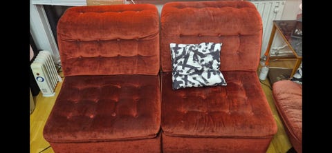 5 000 krAntik Soffgrupp med fåtöljer, stolar och runt soffbord rosa tyg träBodafors11 febLägg till i favoriter.
