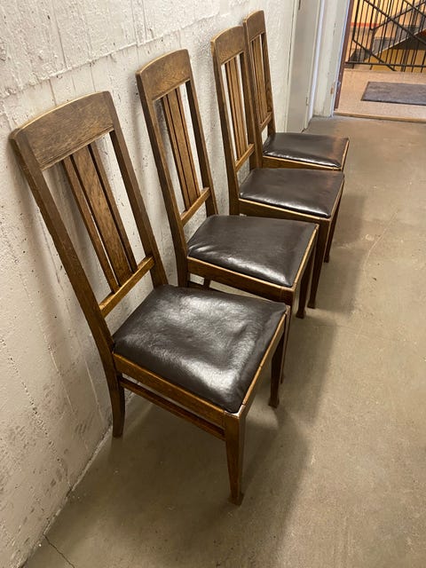 3 000 krMatsalsbord i ek med 4 stolar & iläggsskiva. Finbord. 1940-talet.Helsingborg7 febLägg till i favoriter.
