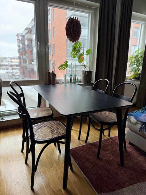 1 000 krMatbord i massiv björk med fyra stolar och iläggsskivaSaltsjöbaden8 febLägg till i favoriter.