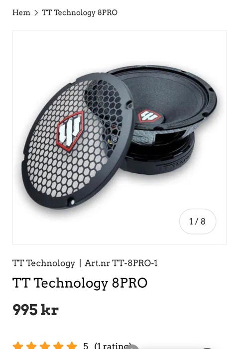 2 500 krTT Technology 8PRO 8" Högtalare 700W 4 Ohm 3stValskog4 dagarKöp nuLastbil i rörelseKan skickasLägg till i favoriter.