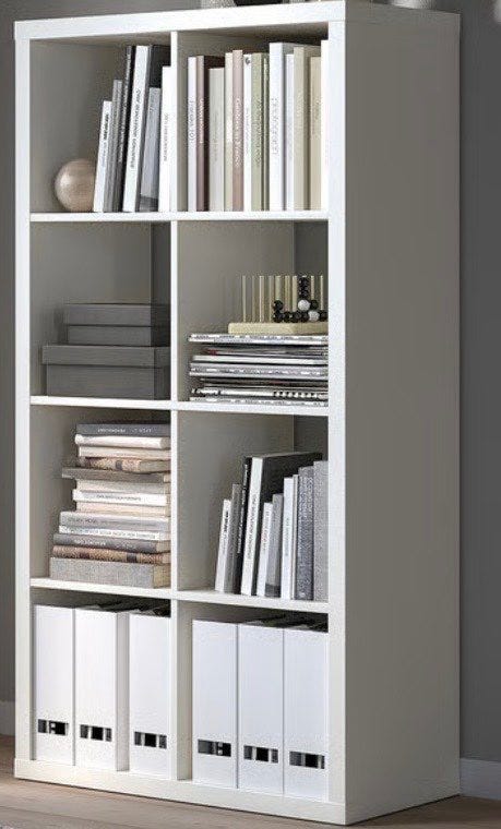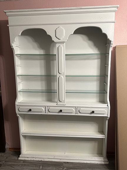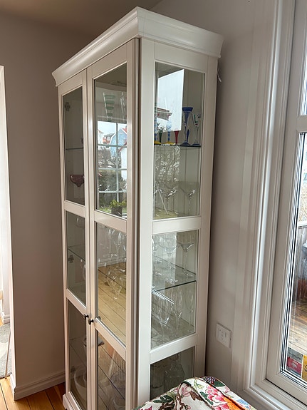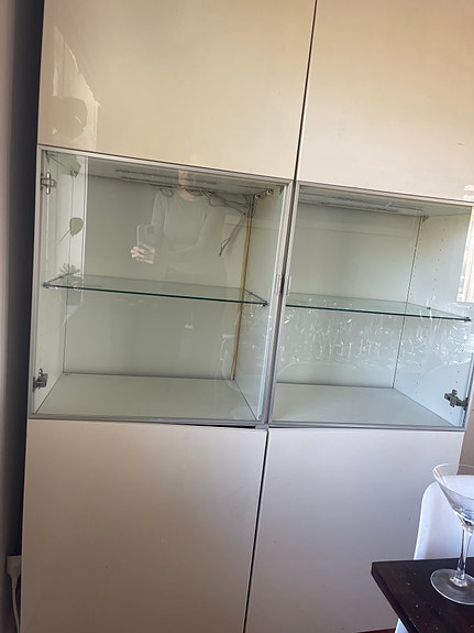 Vit bokhylla, vitrinskåp