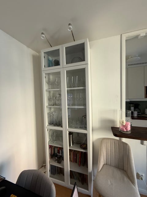Hylla med vitrinskåp