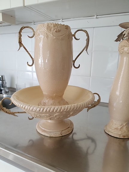 Säljesdekorationsset med vas och ljusstakar skål beige keramik och metallNyköping16 timLastbil i rörelseKan skickasLägg till i favoriter.Öppna annons