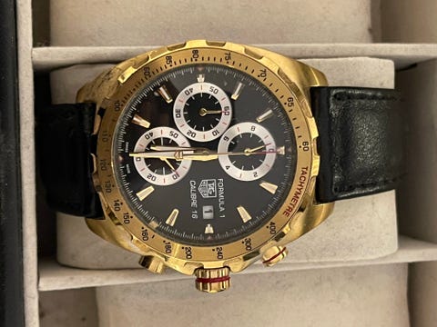 10 390 krTAG Heuer Formula 1 herrklocka svart urtavla guldfärgad boett läderarmband TAG HeuerBorås9 febKöp nuLastbil i rörelseKan skickasLägg till i favoriter.