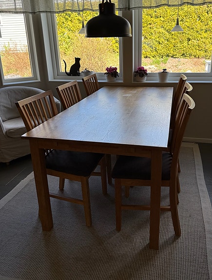 5 000 krUtdragbart matbord i äkta trä + 6 stolar (plats för upp till 10 personer) IKEAMärsta19 aprLägg till i favoriter.Öppna annons